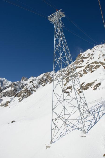 A fronte dei cinque anni di lavori originariamente preventivati, l’impianto è stato realizzato in quattro anni e consegnato nel rispetto dei termini concordati – a maggio 2015 – malgrado gli imprevisti geologici che hanno di fatto bloccato per un anno l’avanzamento dei lavori. Nevicate, bufere di vento e ghiaccio in inverno, l’altitudine, il permafrost e varie altre difficoltà naturali hanno messo a dura prova le tante persone impegnate nei lavori. Nei cantieri allestiti a 1.300, 2.220 e 3.500 metri di quota hanno lavorato oltre 300 tra ingegneri, operai, addetti alla logistica e montatori di funivie, molti dei quali hanno vissuto in container.