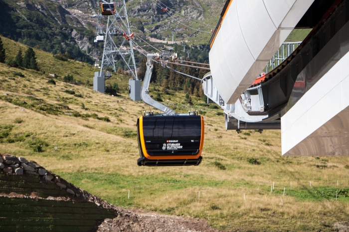 La cabinovia trifune Eisgratbahn presta servizio tutto l'anno, posizionandosi ai massimi livelli quanto a portata, economia di esercizio ed ecosostenibilita', tanto che, da un punto di vista tecnologico, siamo di fronte a una vera e propria nuova generazione di impianti. Si tratta della prima cabinovia 3S al mondo, realizzata in due sezioni ed allestita con un innovativo azionamento diretto.