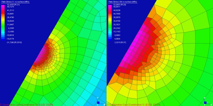 Figura 5 – Tensioni principali di trazione nell’intorno del supporto metallico al telaio.