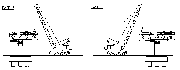 sbalzo dalle pile, con la realizzazione di “stampelle” provvisorie simmetriche, da solidarizzare